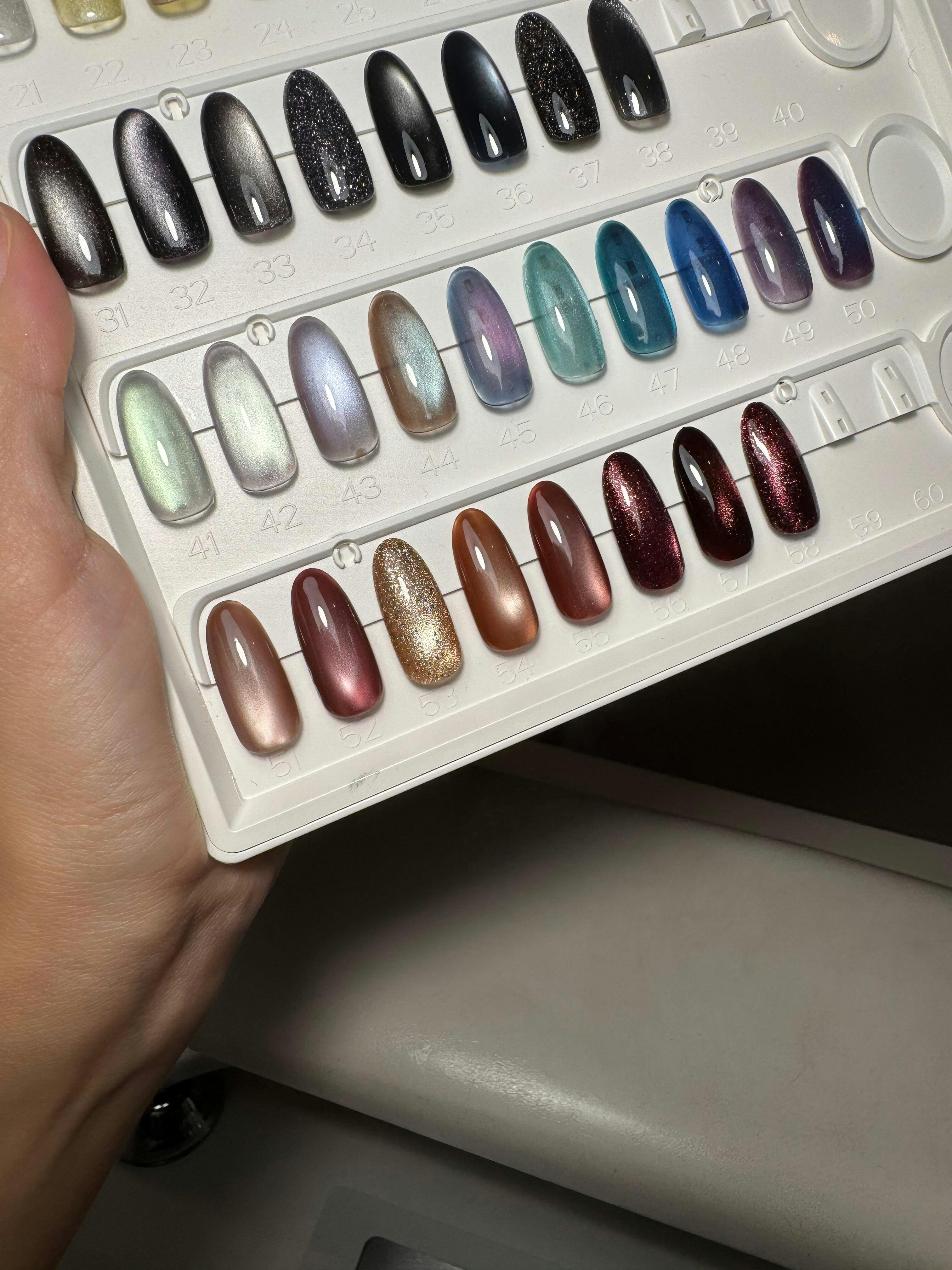 Silvia Matos (Bamboo Nails Studio) I believe this collection will be a hit during autumn and Christmas. It’s very versatile, has light and darker tones, silky cat eye, more chunky pigmented cat eye and glitter cat eye combinations. Perfect for special occasions where you want nails that shine ✨ or just elegant or cozy nails that give you kind of a velvety or silky touch in warm colours. My clients are excited to try them 💖