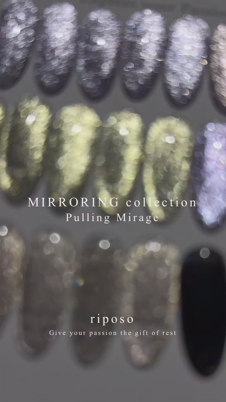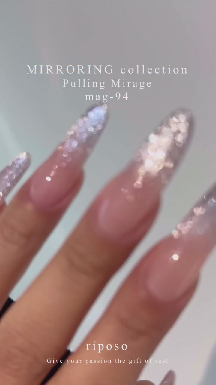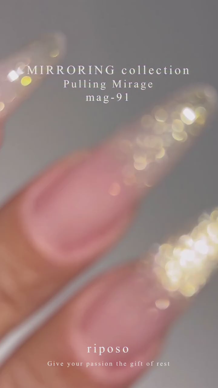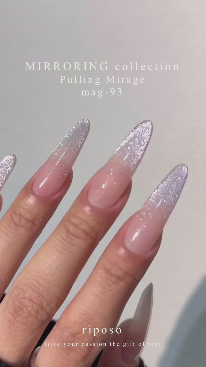 The RIPOSO Mirroring Collection combines magnetic “mirage” gels with high-impact reflective glitter gels for layered light effects. Create crisp cat-eye lines, shifting depth, and intense reflection that pops under direct light or flash.