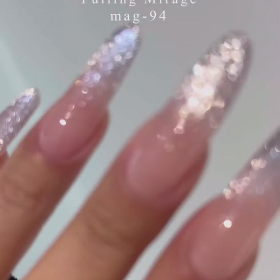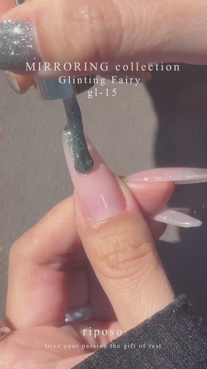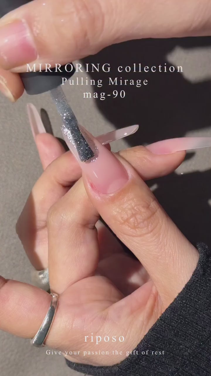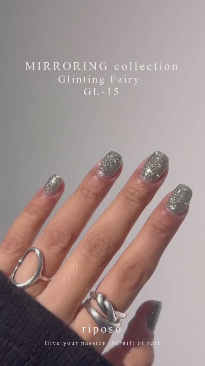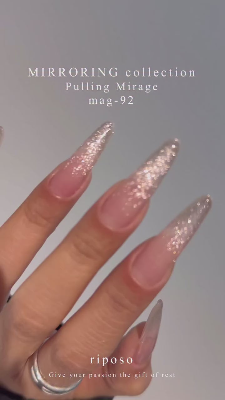 The RIPOSO Mirroring Collection combines magnetic “mirage” gels with high-impact reflective glitter gels for layered light effects. Create crisp cat-eye lines, shifting depth, and intense reflection that pops under direct light or flash.